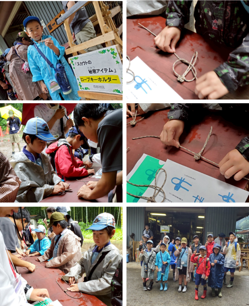 本日、第20回栃木県キャンポリーのオープンデーで、来場したカブスカウトとビーバースカウトたちが「ロープキーホルダー」作りに挑戦しました!