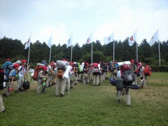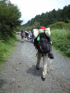 アリーナから荷物を背負って移動。【栃木4隊 神山】