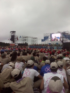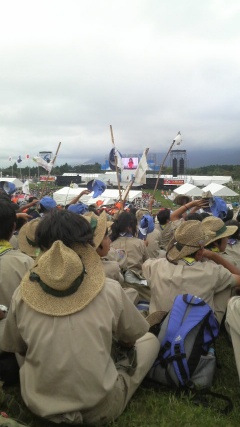 他にも、各地区・各国のパフォーマンスがあり、サッカーWC日本代表の岡田監督(元スカウト)が来たり、宇宙飛行士の野口さん(茅ヶ崎2団の現役ビーバー副長)のビデオメッセージがあったりと、大集会は大盛り上がりだったようです。