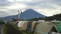 左:8月8日くもり。午前6時の富士山です。昨夜はとても寒く、皆、防寒着を着こみました。【栃木1隊 戸部】