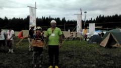 リーダー手作りのプレゼントをもらいビックリ顔のりょう君。思い出に残る朝霧の朝ですね!