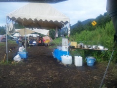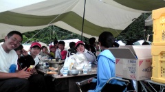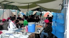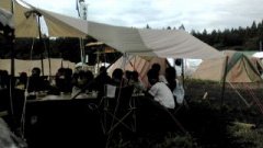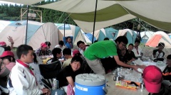 隣のサイトから元気な声が聞こえてきました。急いで覗きに行くと、なんと!栃木5隊のりょう君の13歳のお誕生会。